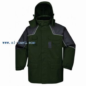 滌綸牛津面料,PVC防水涂層,滌綸塔夫綢襯里,160g/m滌綸保暖填充物。帶帽結(jié)構(gòu);前后銀色反光條設(shè)計(jì),前側(cè)4個(gè)工具口袋,方便實(shí)用?捎糜趹敉怙L(fēng)雨… |