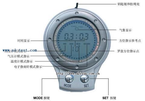 高度計(jì):-700米到8680米的測(cè)量范圍精度1米或3英尺可設(shè)置零海拔處的大氣壓力數(shù)值(新)氣壓計(jì):300mbar到1100mbar測(cè)量范圍精度1mbar.電子指南針:4… |