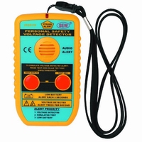 使用方法:作自我測試:雙手壓下雙橡膠按鈕,蜂鳴器嘩-嘩-嘩,LED閃亮,確定本表正常。將本表正面接近220V交流電源約2公分,蜂鳴器嘩-嘩-嘩,LED閃… |