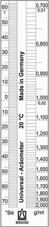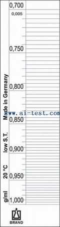 液體比重計(jì),用于查找比重范圍,0.700-2.000g/cm³,刻度:0.01g/cm³ |
