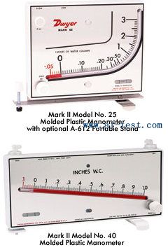 作為垂直U形管壓力計作為傾斜式壓力計0-0-16"水柱1"一個主刻度;.2"一個小刻度17"長的刻度,可測.20-2.6"水柱.02"一個刻度1227M(公制)型可測0-4… |