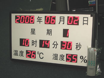 溫濕度萬年歷數(shù)碼顯示屏應(yīng)用:實(shí)時(shí)顯示現(xiàn)場(chǎng)溫濕度、年月日、時(shí)分秒,主用于生產(chǎn)車間,機(jī)房,倉庫,車站,候車(機(jī))室,圖書館、高尚住宅。參數(shù):… |