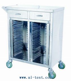 不銹鋼送藥車Ⅱ型備注:頂對(duì)掀門,抽屜式(共80藥格),臺(tái)面尺寸:645*450規(guī)格:838*450*850 |