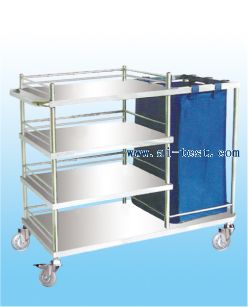 輸液車(理化板)備注:理化板臺面,車體采用鋁型材和鋁扣板結構,左右兩側上部有抽板,車身左右兩側配有雜物桶和網(wǎng)籃各一只.臺面上有支架掛鉤,帶防撞圈… |