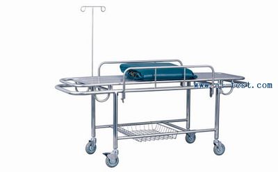 不銹鋼擔架車(Ⅱ型)備注:不銹鋼板條床面,配人革軟墊,摩輪規(guī)格:1875*590*795 |