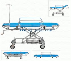 不銹鋼或噴塑搶救床備注:三搖不銹鋼搶救床噴塑搶救床床面可升降,有輪,床面尺寸:1900×580 |