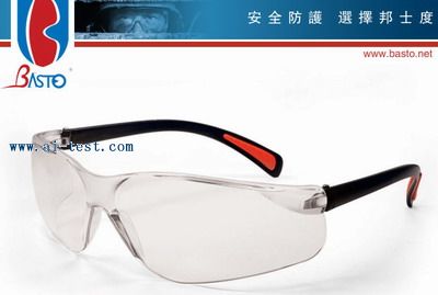 時尚防護眼鏡:黑色磨砂鏡腳,加入桔紅色飾片,融入時尚元素;進口PC(聚碳酸脂)鏡片加硬強化,防沖擊,防刮擦,防靜電,防紫外線;品牌:臺灣BASTO
