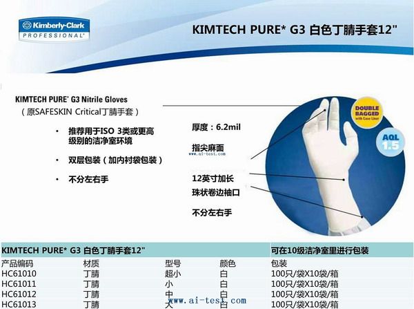 KIMTECH PURE* G3 白色丁腈手套12"HC61010-HC61013.推薦用于ISO 3類或更高級別的潔凈室環(huán)境.雙層包裝(加內(nèi)襯