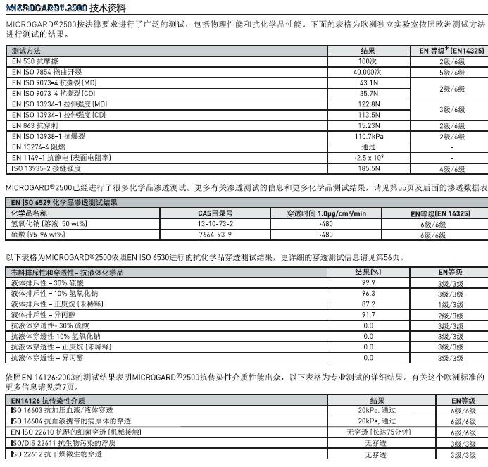 Microgard®2500標準型防護服達到EN14126:2003傳染性介質(zhì)防護服的最高級別