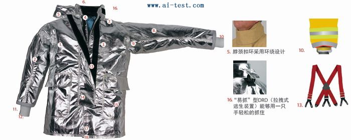 | AM3220082 | 接近式消防戰(zhàn)斗服--上衣:35英寸長,三片剪裁式設計;接縫采用8-10針/英寸,雙針縫紉而成;所有五金件均用模切皮革加固;內(nèi)襯采用魔術貼及子母扣封合在上衣上;脖頸扣環(huán)采用環(huán)繞設計可以同頭盔,遮罩,空氣呼吸器面具很好的銜接;衣領的后背有衣架環(huán);在肩膀部位增加熱防護襯里以增加放熱性能;依據(jù)手臂移動范圍并按人機原理設計的兩片式曲線袖管;腋下三角片的設計阻止上衣被向上提拉 深入的雙層氯丁膠/棉材質(zhì)的袖口可以與在任何形式的防護手套結合;雙針縫紉的灰色皮革袖口翻邊;4英寸的NOMEX針織護腕可保持良好的原始形狀;拉鏈/魔術貼拉合,新型耐高溫Delrin塑鋼拉鏈上下拉動很順滑,不會卡住或生銹;4英寸寬的門襟有上下兩層組成(外層面料+防潮隔熱里層);;9英寸X9英寸的大口袋,魔術貼封口;“易抓”型DRD(拉拽式逃生裝置)能夠用一只手輕松的抓住;N/A;衣內(nèi)襯檢查孔;XS,S,M,L,XL,2XL;1件/箱;品牌:美國LAKELAND | 1箱 | 12075/件 | 洽詢 | 備注 |