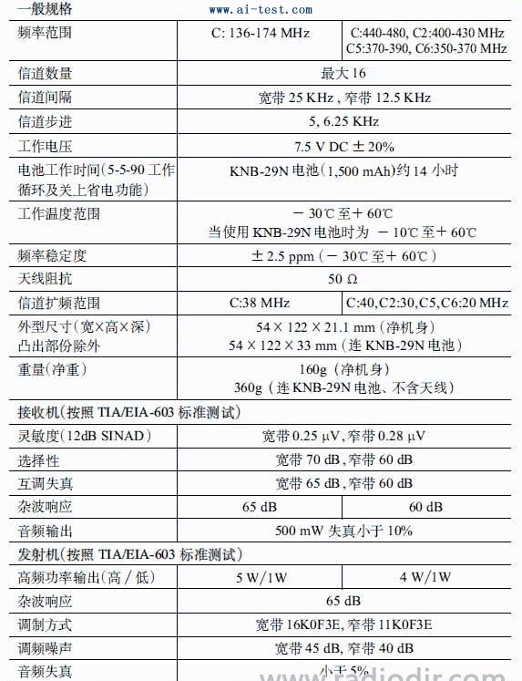 | A3230160 | 小型對(duì)講機(jī):工作頻率∶136-174MHz;信道擴(kuò)頻范圍:C:38HZ;雜波響應(yīng):65DB;高頻功率輸出(高/低):5W/1W;僅主機(jī)+天線,不含電池,充電器;人體工程學(xué)的流線外形、手感特佳;最大 16 個(gè)信道,轉(zhuǎn)換信道聲音提示;啞音頻及數(shù)字啞音頻可作啟動(dòng)中轉(zhuǎn)及共用頻道編組;DTMF 解碼可作選呼,自動(dòng)應(yīng)答;優(yōu)先掃描,實(shí)現(xiàn)多信道即時(shí)應(yīng)答;Fleet Sync 數(shù)字通信拉議作 PTT ID 功能和選呼功能;內(nèi)置 VOX 聲音控制發(fā)射操作可免提通話;兩個(gè)可編程功能鍵,語(yǔ)音整理功能;特大揚(yáng)聲器 500mW音頻輸出,音質(zhì)清晰洪亮;特大容量電池,工作時(shí)間長(zhǎng)達(dá) 14 小時(shí);符合美國(guó)軍標(biāo) MIL-STD810,歐洲標(biāo)準(zhǔn) IP54 及 IP55 等測(cè)試;重量∶約360g (連KNB-29N電池);尺寸(寬 x 高 x 深)∶54 x 122 x 33 mm (連KNB-29N電池);尺寸(寬 x 高 x 深)∶54 x 122 x 33 mm (連KNB-29N電池;重量∶約360g (連KNB-29N電池),;品牌:日本KENWOOD | 1 | 1400 | 洽詢 | 備注 | |
