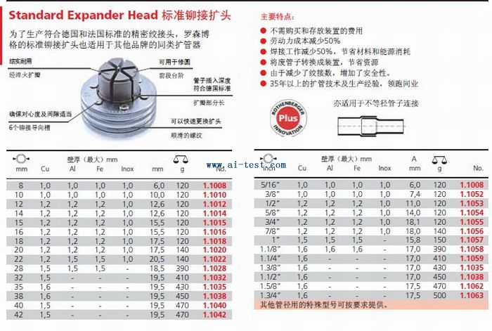 為了生產(chǎn)符合國際標(biāo)準(zhǔn)的精密接頭,羅森博格的標(biāo)準(zhǔn)鉚接擴(kuò)頭也適用于其他品牌的類似擴(kuò)管器