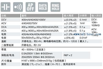 l 直流 功能 量程 分辨力 精度 … | 洽詢 | 3565 |