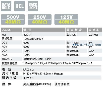 H163×W100×D47mm470g 額定電壓:500V 額定電阻:2/20/200/2000… | 洽詢 | 2700 |