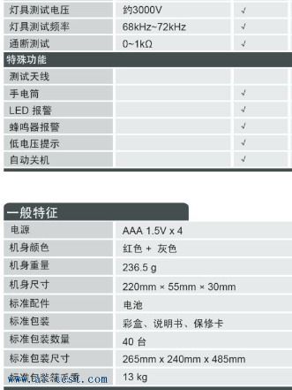 功能特點(diǎn) :快速測量低壓鈉燈,高壓鈉燈(≤110W),氖燈,節(jié)能燈,無極燈,汞燈等燈具;通斷功能來判斷多種燈具電