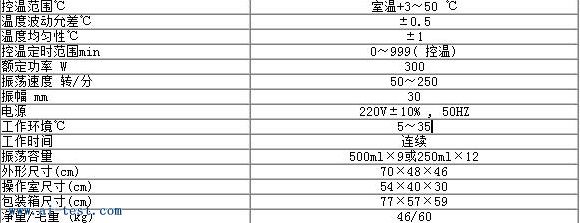 臺(tái)式恒溫振蕩器:控溫范圍:室溫+3-50℃;溫度波動(dòng)允差℃:±0.5;溫度均勻性℃:±0.5;控溫定時(shí)范圍min:0-999(控溫);額定功率W:300;震蕩速度 轉(zhuǎn)/分:50-250;振幅mm:30;工作環(huán)境℃:5-35;工作時(shí)間:連續(xù);震蕩容量:500ml*9或250ml*12;品牌:中國(guó) |