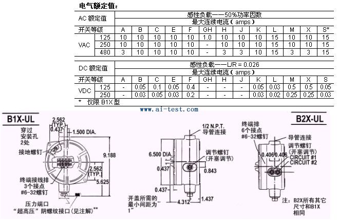 壓力開關(guān)-表中所列出的數(shù)值單位為 PSI
