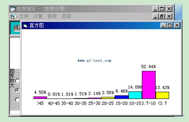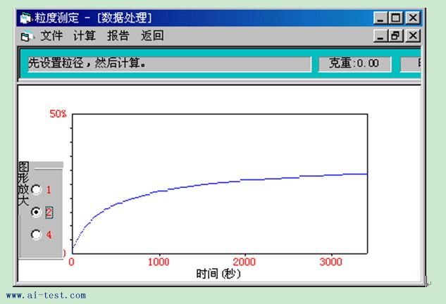 屏幕上,沉降結(jié)束后,可將曲線儲(chǔ)存起來,以便隨時(shí)調(diào)用,然后進(jìn)行顆粒度計(jì)算,計(jì)算結(jié)果可以表和圖形式打印出