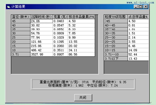 沉降曲線采集、存儲(chǔ)、調(diào)用;顆粒大小、中位徑、平均粒徑、比表面積測定;平均 誤差計(jì)算;顆粒分布分析;計(jì)算結(jié)果、圖表打印 |