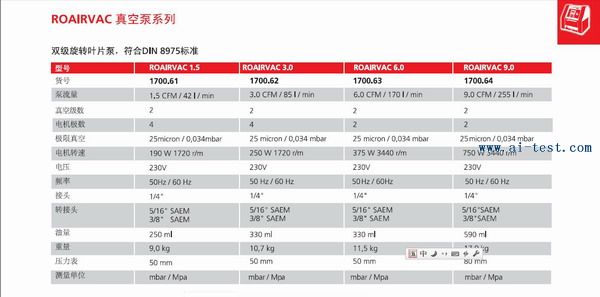 | AM514750 | 真空泵:玻璃視窗易于觀察油位;泵流量:3.0CFM/85L/min;電機(jī)極數(shù):4;電機(jī)轉(zhuǎn)速:250W1720r/m;油量:330ml;重量:10.7kg;品牌:德國(guó)ROTHENBERGER | 1臺(tái) | 洽詢 | 洽詢 | 備注 | |