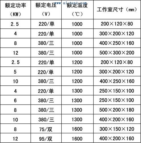 型號(hào) 爐膛容積L 爐膛尺寸L*W*H mm 輸… | 洽詢 | 61413 |