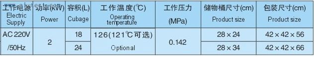 A101134 手提式不銹鋼壓力蒸汽滅菌器(煤電兩用型、防干燒型):容積:24L;儲物桶尺寸cm:28×34;包裝尺寸cm:42×42×66;其他參數(shù)與A101133一樣;品牌:中國 2125 洽詢 備注