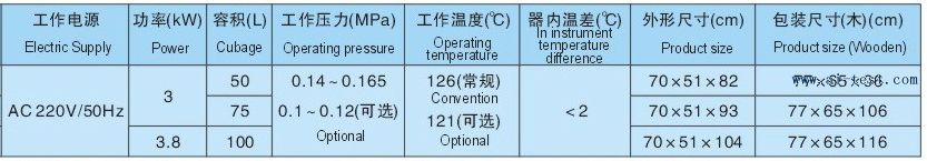 A101117 立式壓力蒸汽滅菌器(人工控水型):工作電源AC 220V/50Hz;功率:3kw;容積:50L;工作壓力:.014-0.165MPa、0.1-0.12MPa(可選);工作溫度(℃):126(常規(guī))121(可選);器內(nèi)溫差:<2℃;外形尺寸cm:70×51×82;包裝尺寸(木)cm:77×65×96;品牌:中國 1 8625 洽詢 備注