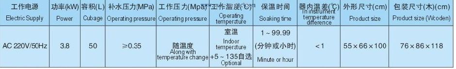 反壓高溫蒸煮鍋:工作電源AC 220V/50Hz;功率:3.8kw;容積:50L;補水水壓≥0.35MPa;工作壓力MPa:隨溫度;工作溫度; 室溫+5℃-135℃自選;保溫時間:1-99.99分鐘或小時;器內(nèi)溫差:<1℃;外形尺寸cm:55×66×100;包裝尺寸(木)cm:76×86×118;品牌:中國 |