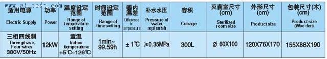 | A101112 | 型臥式圓形壓力蒸汽滅菌器:適用電源:三相四線制380V/Hz;功率:12kw;溫度設(shè)定范圍:室溫+5℃-126℃;時(shí)間設(shè)定范圍:1min99.59h;器內(nèi)溫差:±1℃;補(bǔ)水水壓≥0.35MPa;容積:300L;滅菌室尺寸cm:Φ60×100外形尺寸cm:120×76×170;包裝尺寸(木)cm:155×88×190;品牌:中國 | 1 | 44750 | 洽詢 | 備注 |