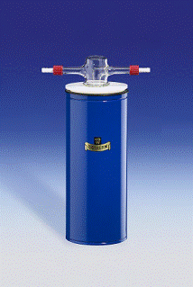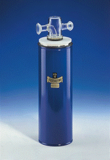 冷阱和杜瓦瓶由DIN/ISO 358 5標(biāo)準(zhǔn)的3.3硼硅玻璃制成,適用于真空操作下的液氮。杜瓦瓶鍍銀,并被排空。杜瓦瓶