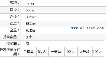 | A130276 | 液氮罐:容積:11.2L;口徑:50mm;外徑:305mm;高度:550mm;空重:6.5kg;提筒數(shù)量:3個(gè);保護(hù)套:有;靜態(tài)液氮保存期:合格品:85天,一等品:92天;優(yōu)等品:101天;品牌:中國(guó) | 1 | 2260 | 洽詢 | 備注 | |