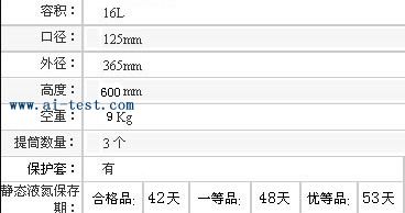 | A130290 | 液氮罐:容積:16L;口徑:125mm;外徑:365mm;高度:600mm;空重:9kg;提筒數(shù)量:3個(gè);保護(hù)套:有;靜態(tài)液氮保存期:合格品:42天,一等品:48天;優(yōu)等品:53天;品牌:中國 | 1 | 3780 | 洽詢 | 備注 | |