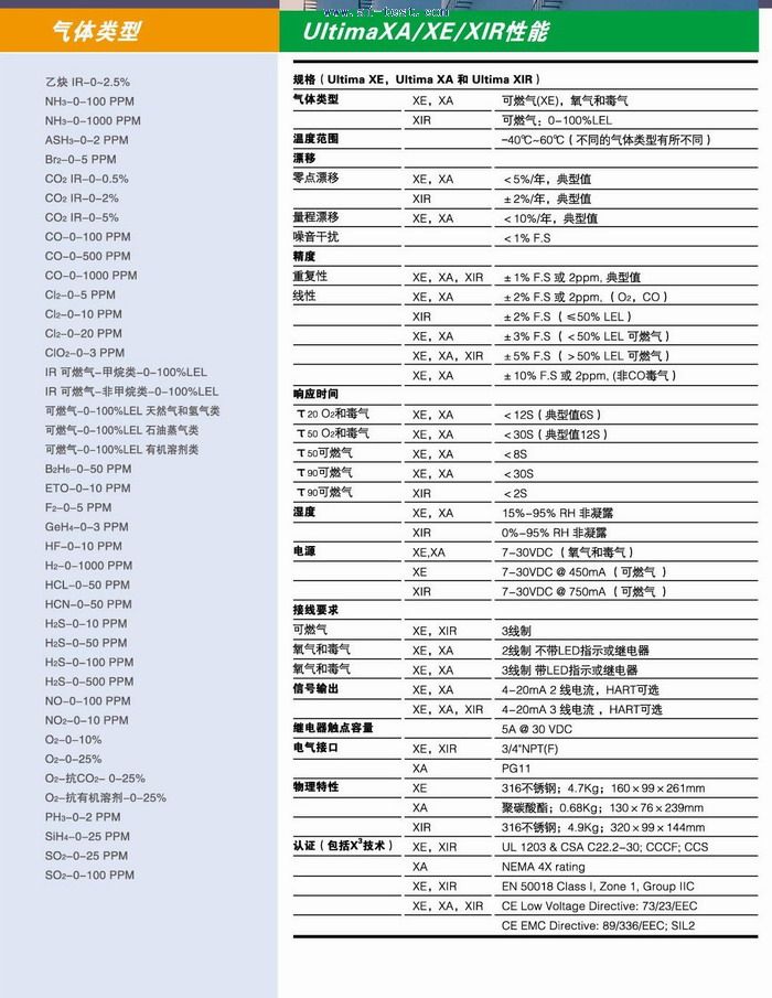Ultima XIR 氣體變送器UL, CSA, CE, ATEX,CCCF,CCS