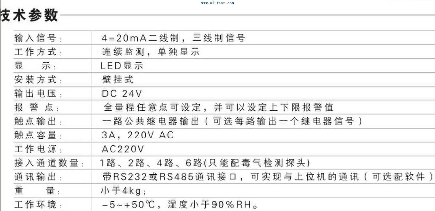 | A800412 | 毒氣/可燃報警控制器(數(shù)碼管顯示):4通道,采集器尺寸: 450mm×214mm×100mm(長×寬×高) ;顯示方式: 單顯;可選功能:A:4-20mA輸出,B:RS232輸出,C:RS485輸出,D:X繼電器輸出數(shù)量(X表示數(shù)量),E:上位機軟件(RS232輸出時可選項);品牌:中國 | 5000 | 備注 | |||