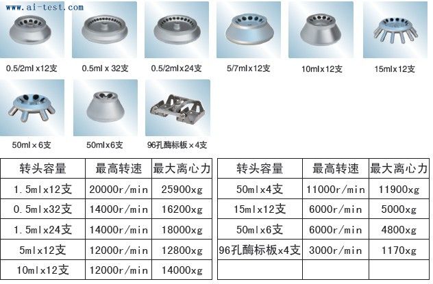 | AL1332794 | 8號角度轉(zhuǎn)子:最高轉(zhuǎn)速(max Speed):6000r/min;最大相對離心力(Max.RCF):4800×g ;適配器規(guī)格及容量:50ml*6支;品牌:中國 | 1 | 3000 | 洽詢 | 備注 | |