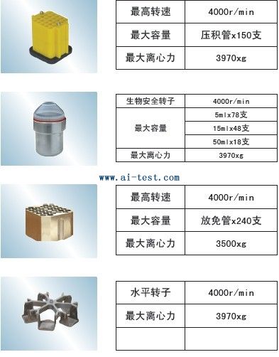 | AL1332800 | 1號水平轉(zhuǎn)子:最高轉(zhuǎn)速:4000 r/min;最大離心力:3970×g;適配器規(guī)格及容量:50ml*24支;品牌:中國 | 1 | 600 | 洽詢 | 備注 | |