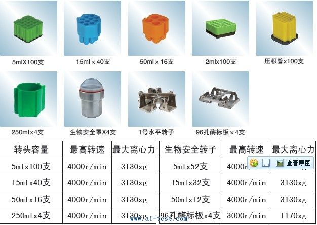| AL1332812 | 1號水平轉(zhuǎn)子:最高轉(zhuǎn)速:4000 r/min;最大離心力:3130×g;適配器規(guī)格及容量:50ml*16支;品牌:中國 | 1 | 450 | 洽詢 | 備注 | |