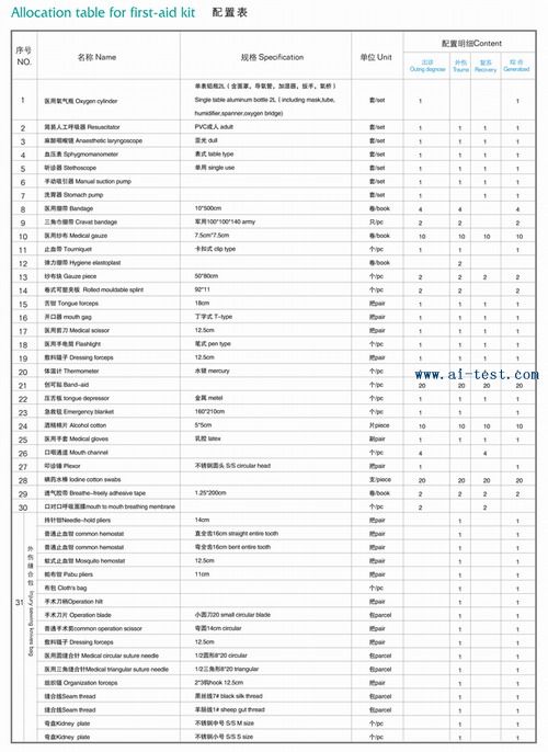 | AM5000087 | 急救箱;采用鋁合金箱體,內(nèi)部結構緊湊合理;紙箱包裝(1套)Packing(1pc);尺寸(Size):53×16×44cm;品牌:中國。 | 1 | 洽詢 | 洽詢 | 備注 |