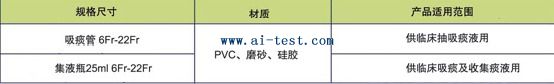 一次性使用吸痰包;規(guī)格:吸痰管6Fr-22Fr;材質(zhì):PVC;產(chǎn)品適用范圍:供臨床抽吸痰液用;品牌:中國。 |