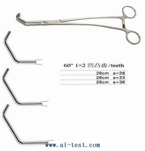 無(wú)損傷腔靜脈鉗;22cm 雙角彎 60°×26 1×2齒;品牌:中國(guó)。 |