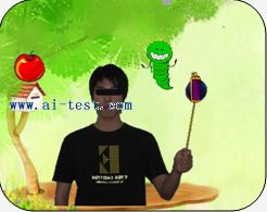 小朋友通過聽指令,看自己的形象在游戲中,直接觸摸。她觸摸的反應(yīng)快慢,將會得到不同的結(jié)果。人機(jī)采成的魔幻