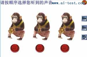 2、聽覺記憶(五級):幾只憨態(tài)可掬的小猴子出現(xiàn)在小朋友的面前,天氣悶依次敲打手中的銅鑼,然后小朋友選出剛