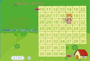 2、數(shù)字迷宮(五級):可愛的小熊在迷宮里迷路了。小朋友只需要按照10-40的順序就可以再迷宮中幫小熊找到回家