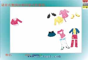 1、相似性推理(三級):很多漂亮的衣服出現(xiàn)在校朋友的面前,游戲要求小朋友挑出與其他衣服款式不同的那件。挑