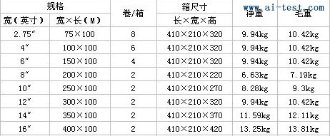 熱封立體卷袋;規(guī)格:寬(英寸)6";長(zhǎng)×寬(m)150×100;卷/箱:4;凈重:9.94KG;毛重:10.42KG;品牌:中國(guó)。 |