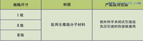 一次性使用胸腔引流瓶;規(guī)格尺寸:III瓶;材質(zhì):醫(yī)用無毒高分子材料;產(chǎn)品適用范圍:供外科手術(shù)閉式引流或負(fù)壓引流時(shí)存放體液用;品牌:中國。 |