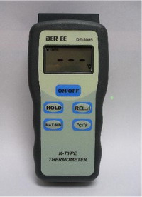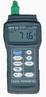 數(shù)字式溫度計LCD面板可顯示時間,自動換文件可測量最大/最小/平均值,最大/最小值鎖定測試范圍:-200℃-1370℃感應(yīng)器:K-Ttype單通道準確度:±0.… |